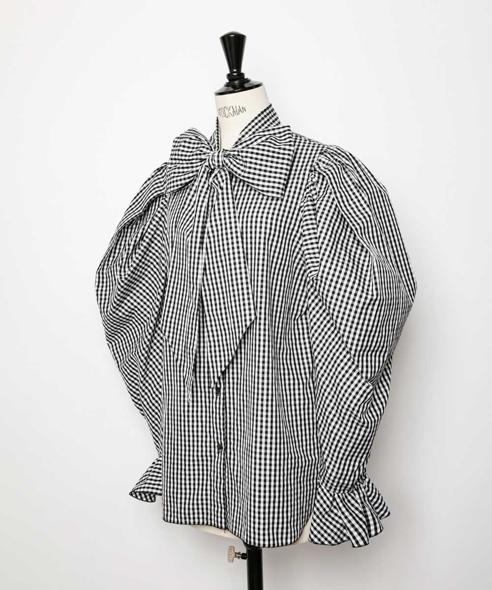 手塚治虫の「リボンの騎士」の主人公サファイアをイメージしたボウタイブラウスです。