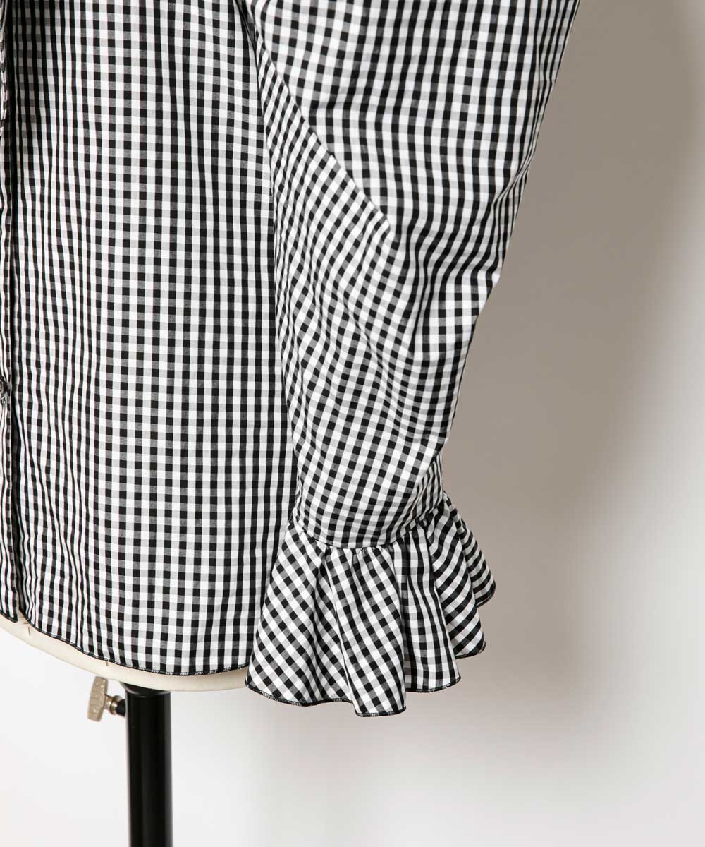 袖口にはバイヤスカットをした波打つフリル袖を。